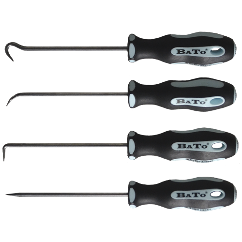 | Mini-krogudtrækkersæt med 4 dele. Indeholder fire krogudtrækkere med forskellige spidser: fuld runding, 45° runding, 90° vinklet spids og lige spids. | |