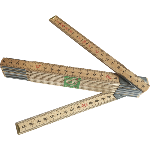 | Tommestok med 12 led og metrisk gradering i sort på begge sider og med røde decimetercifre. Med vandbaseret beskyttelseslak. Typegodkendt iht. EU klasse III. | |
