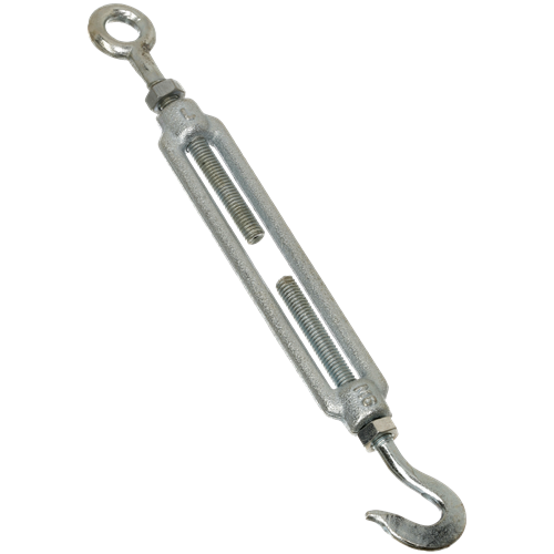 | Galvaniseret bardunstrammer med øje og krog til stramning af stålwirer. I henhold til DIN 1480. Fås i flere dimensioner. | |