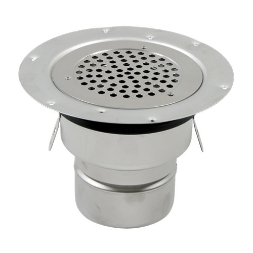 | JUSTERBART BOLIGAFLØB CIRCLE- Gulv: vinyl- Rist: Ø155mm- Udløb: Ø110mm, lodret- Rustfrit stål: AISI304/EN1.4301 | |