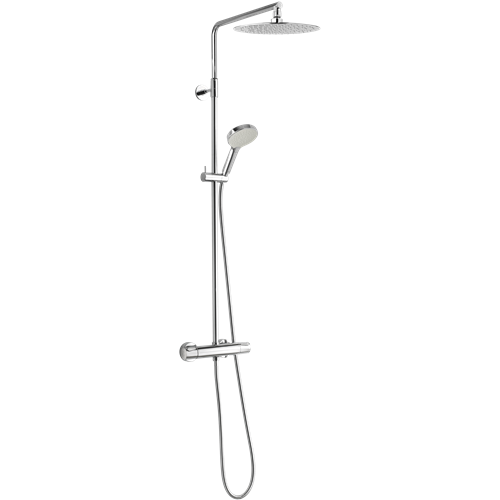 Damixa Silhouet brusersystem med termostat, ø250 mm hovedbruser og håndbruser samt 1750 mm bruserslange i metal. Enkel og indbydende, som med sit slanke, rene udtryk. I brusebadet skiller Silhouet sig ud med en hovedbruser, der med sit ultratynde design giver en næsten svævende fornemmelse. Justerbar indstilling af højde. Integreret omskifter. Standard 150 mm CC. Hovedbruser maks. 9 ltr/min. og håndbruser maks. 9 ltr/min. (v/ 300kpa). Der medfølger 3/4" rosetter og excentriske forskruninger. Fås med krom eller mat sort overflade, eller de særlige PVD overflader, som er en PVD-belægning der giver en hårdere og endnu mere robust overflade, der er ekstremt modstandsdygtig overfor ridser, korrosion og misfarvning.