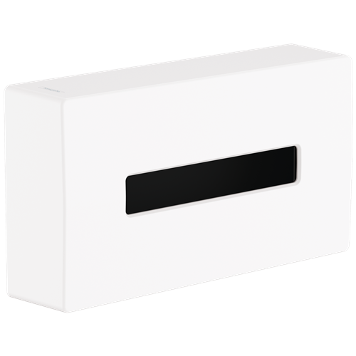 | Hansgrohe AddStoris dispenser til servietter. Passer til gængse papirservietæsker. Til vægmontering lodret eller vandret, og kan monteres med lim uden at bore, eller med skruer og har en boreafstand på 200 mm. Fremstillet af kunststof. Fås i flere farver. | |