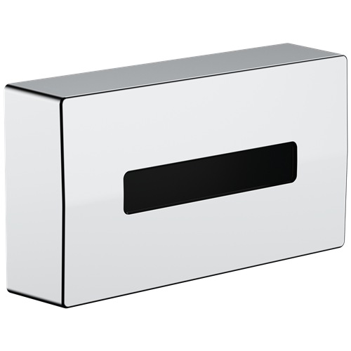 | Hansgrohe AddStoris dispenser til servietter. Passer til gængse papirservietæsker. Til vægmontering lodret eller vandret, og kan monteres med lim uden at bore, eller med skruer og har en boreafstand på 200 mm. Fremstillet af kunststof. Fås i flere farver. | |