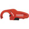 Rørskærer til plastdrænrør Ridgid P-TEC plastrørskærer er den første skærer af sin art, der giver mulighed for problemfrit at foretage en ren, hurtig og lige afskæring på tyndvæggede (< 2,5 mm) plastrør. Denne alsidige skærer kan bruges på polyethylen (PE), polypropylen (PP) og tyndvæggede PVC-rør i 50 mm plastdrænrør. P-TEC skæreren er yderligere en tilføjelse til familien af Ridgid rørværktøjer, der tilfører fantastisk værdi til enhver virksomhed, hvor der bruges og monteres PVC/PP/PE-rør. Ren, automatisk afgratning, denne skærers snit resulterer kun i en fin plasttråd i modsætning til de trævler, der opstår omkring en nedstrygers snit. Intet behov for andet værktøj til afgratning, denne skærer afgrater automatisk parallelt med skærehandlingen. Automatisk affasning, giver umiddelbar, let samling med andre vaskafløbstykker. Hurtig skæring med gennemsnitligt seks omdrejninger til at gennemføre en skæring, hvilket er fire gange hurtigere end en nedstryger. Letkiksvinduer sikrer en lige afskæring på det markerede rør hver gang. Automatisk afgratning og affasning. Konstruktion med åben boregang, som reducerer den påkrævede håndkraft til rørskæring. Fuldstændig eliminerer glidning på røret. Gør det muligt at skære dobbeltflanget 50 mm plastdrænrør.